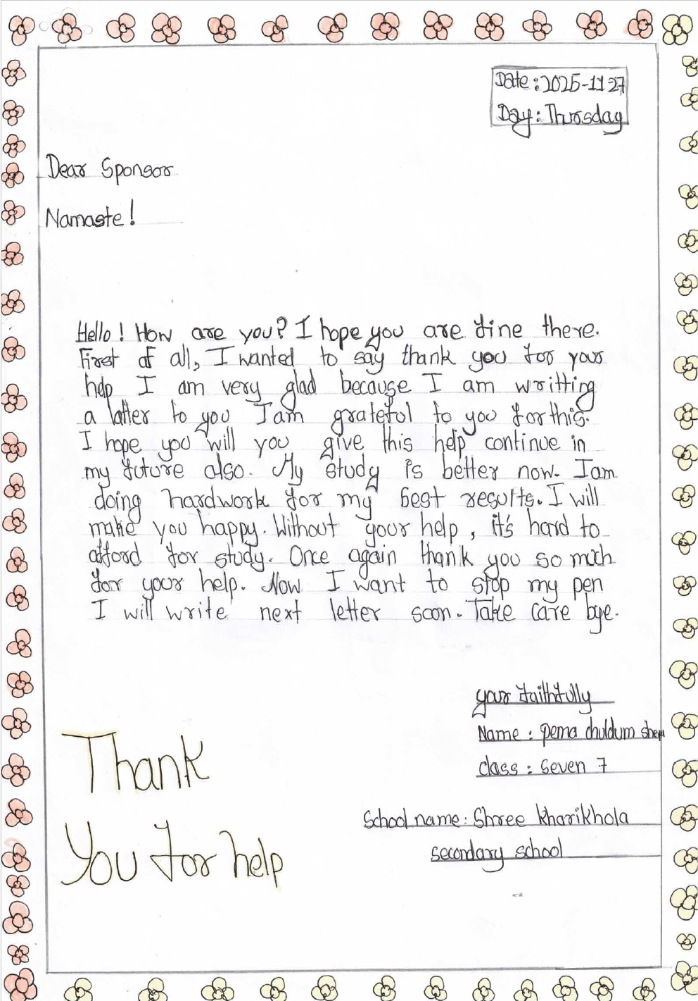 Au début de cette nouvelle année, nous avons reçu plusieurs remerciements d'enfants parrainés.